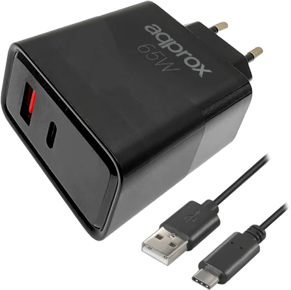 CARGADOR USB DE VIAJE/PARED 1xUSB/USB-C + CABLE USB-A A USB-C 65W NEGRO APPROX