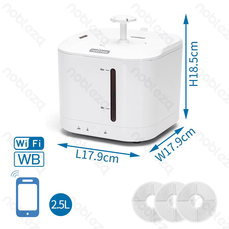 FUENTE DE AGUA INTELIGENTE PARA MASCOTAS 2.5L BLANCO NOBLEZA